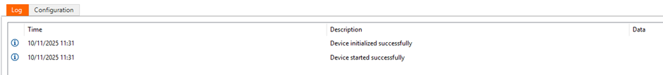 Go back to the Log tab and hit Refresh. The device should have started successfully: