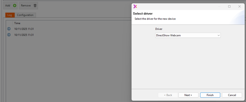 The webcam is the one with driver name DirectShow Webcam, select that one.