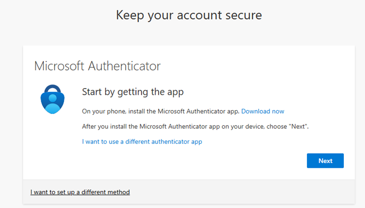 Download the Microsoft Authenticator App from the Play Store / App Store
